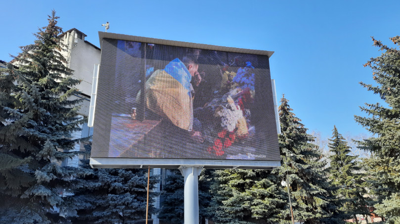 Также на большом городском экране идет демонстрация видео-роликов с напоминанием о событиях тех неспокойных дней.