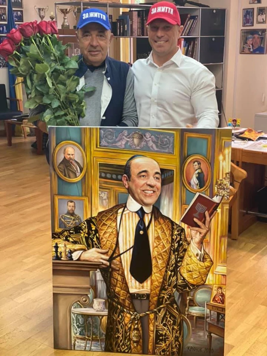 Народный депутат от ОПЗЖ Илья Кива на день рождения однопартийцу Вадиму Рабиновичу вручил его портрет. Об этом Кива сообщил в соцсети.