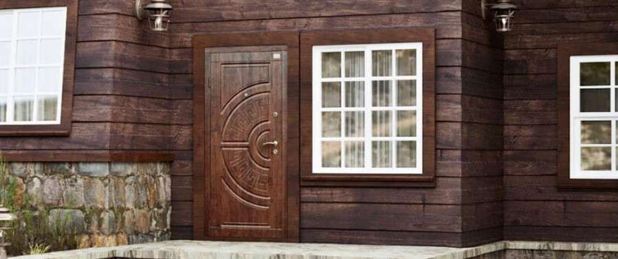 Внешняя отделка. Важно, чтобы дверь сочеталась с архитектурой дома: для классики подойдет отделка под дерево, для современных решений — стекло, металл, порошковое покрытие или декоративные панели.