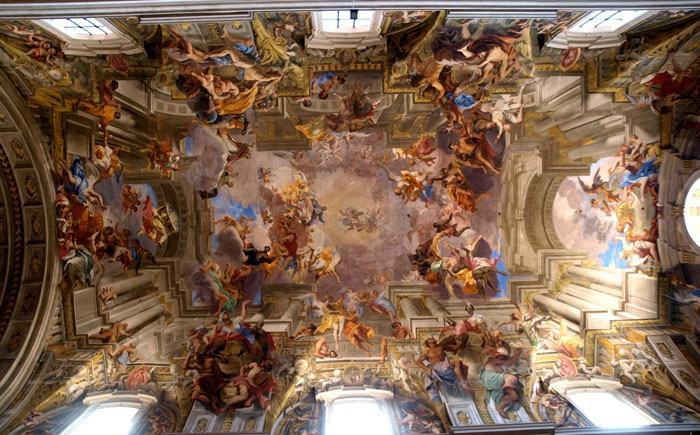 Это искусство, замысел и полную картину которого можно увидеть под определенным углом. Такую технику использовал Леонардо да Винчи в 15 веке и Андреа Поццо на своде церкви Святого Игнатия в Риме с помощью фресок. В современности удачным экспериментом оказалось использование полиграфии: нанесение букв на стены, которые складываются в слова, если стоять с нужной стороны.