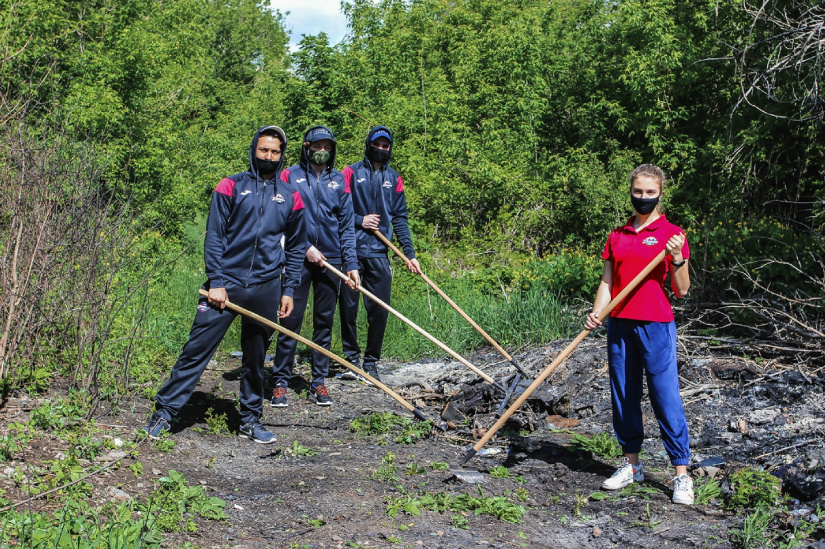 К хоккеистам и благотворителям присоединились также местные активисты, которые несколько лет совмещают приятное с полезным – занимаются спортом и собирают мусор.