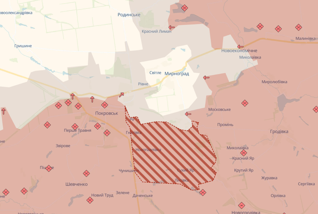 Россияне заметно продвинулись в "мешке" на Покровском направлении. Также вокруг Мирнограда замкнулась серая зона.