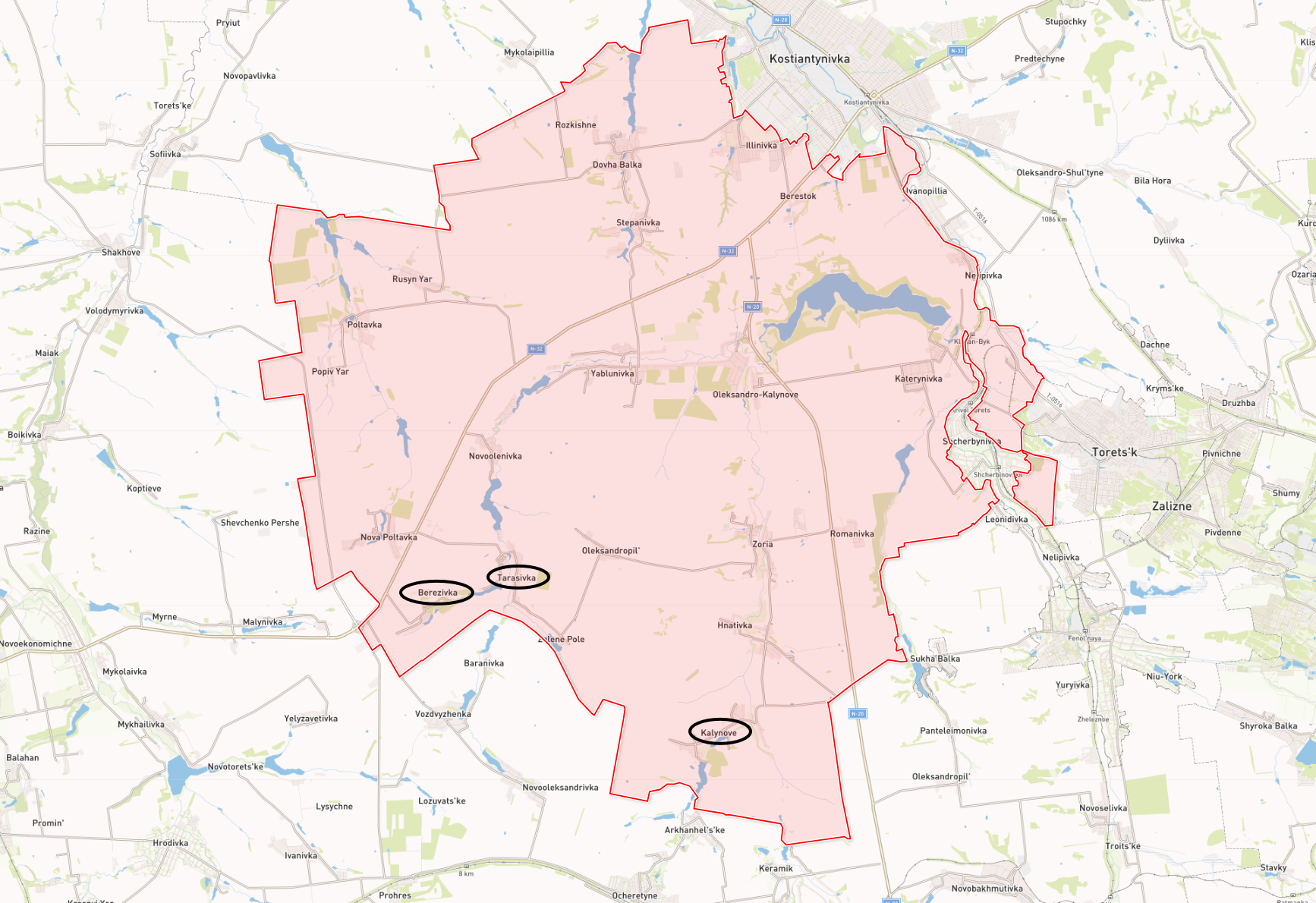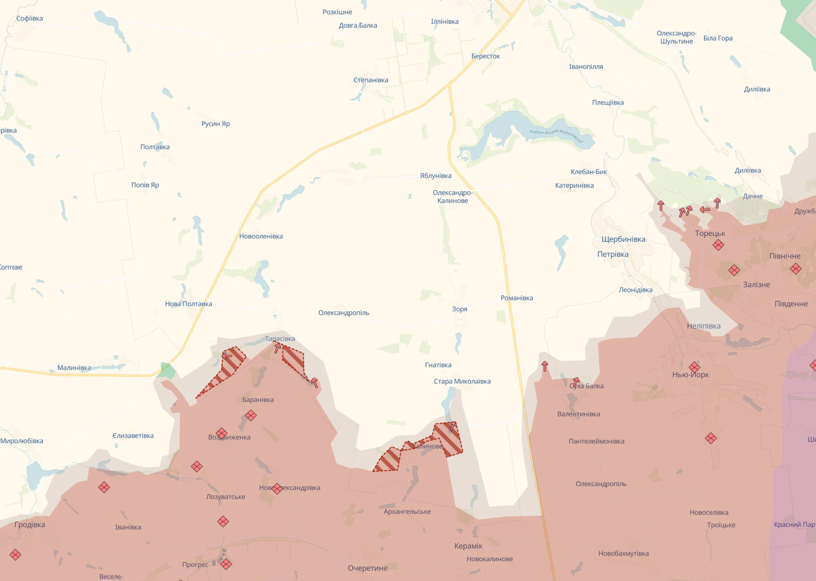 Сообщается, что противник оккупировал село Калиново, а также продвинулся возле двух других — Березовки и Тарасовки.