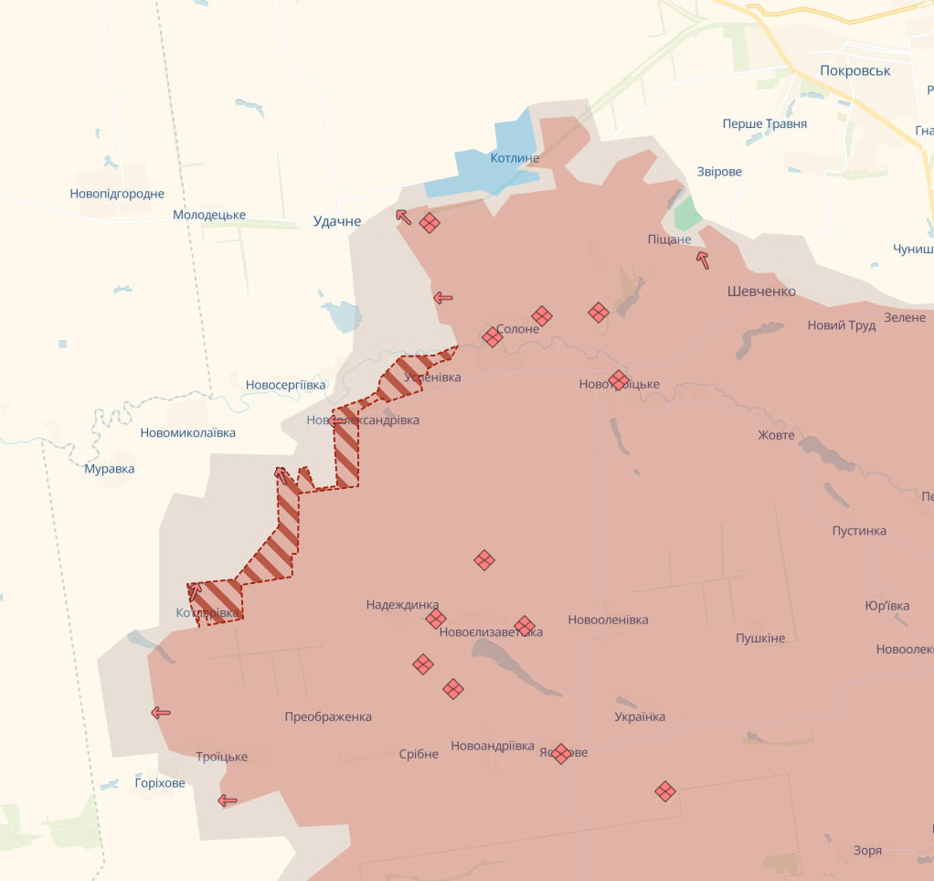 Армия РФ продвинулась в Донецкой области на Покровском направлении в сторону границы с Днепропетровской областью. Отмечается продвижение противника на нескольких участках: от Успеновки до Котляровки.