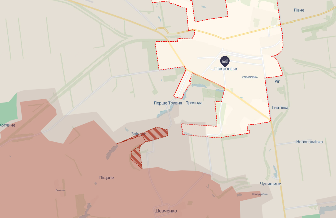Российская армия продвинулась в Зверевом под Покровском, сообщает утром 15 сентября украинский аналитический паблик DeepState.