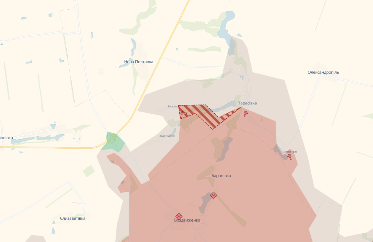 «Враг продвинулся в Березовке, Новом и возле Новомихайловки», — говорится в сообщении. Кроме того, уточняется линия столкновения у Константинополя (Новопавловское направление).
