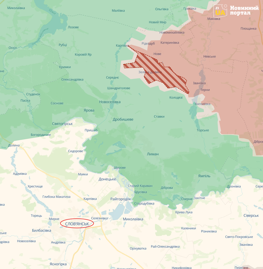 Кроме того, российские войска продвинулись в Лиманской громаде: возле сел Колодцы, Зеленая Долина и Среднее.