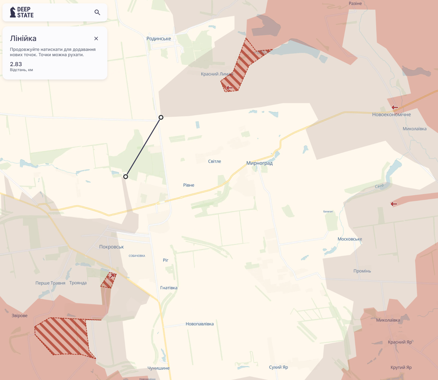 Согласно данным аналитиков DeepState на 29 октября, армия РФ продвинулась в Покровске и возле Красного Лимана, что значительно сузило горло «мешка» вокруг агломерации. «Серая зона» расширилась и проходит теперь почти через весь город, а также через основную трассу на Покровск из Павлограда. Расстояние между «серыми зонами» на юге и севере – менее 3 км.