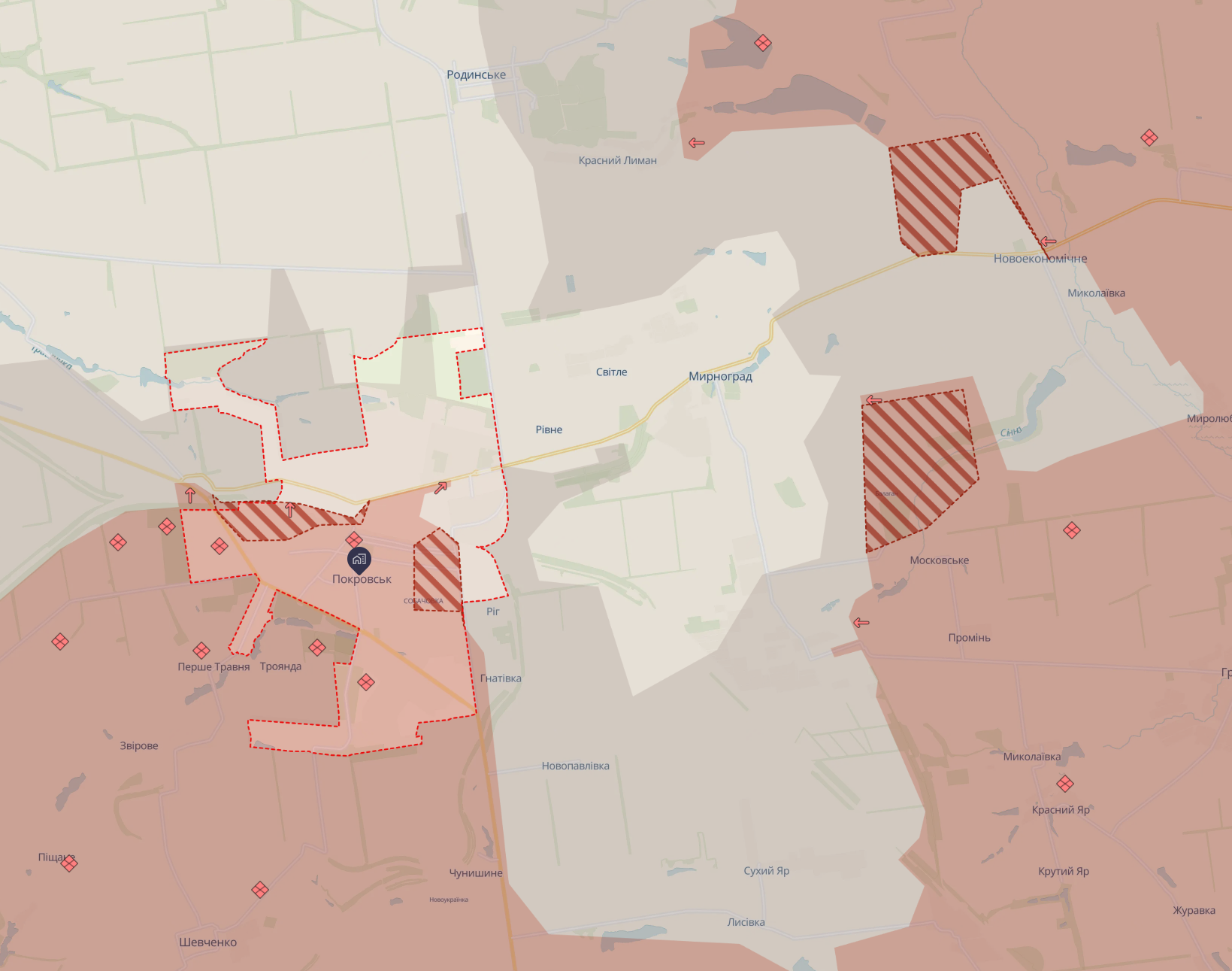 «В Покровске Силы обороны удерживают северную часть города по линии железной дороги. Продолжаются поисково-штурмовые действия для ликвидации очагов врага. Противник пытается малыми группами просочиться из южной в северную часть города. Однако наша аэроразведка и поисковые ударные группы обнаруживают и уничтожают эти группы», — заявил спикер.