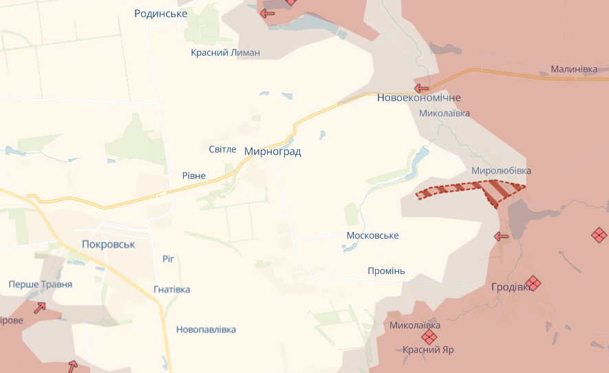 Так, фиксируется движение армии РФ в сторону Мирнограда: вблизи Михайловки.