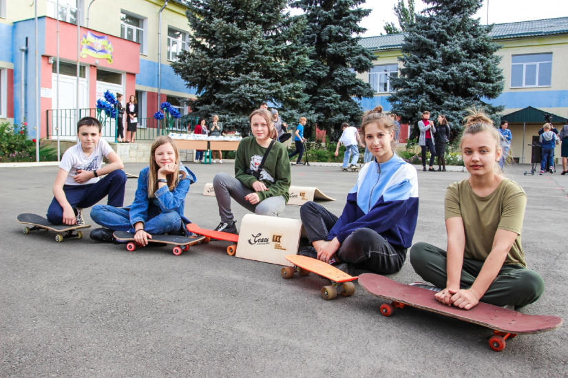 Представители Фонда посетили Ильиновскую опорную школу, а также Константиновские общеобразовательные школы № 6, 9, 11 и 13 и вручили мини-горки юным скейтерам и их наставникам. Именно в этих учебных заведениях наиболее популярен скейтбординг. Теперь подростки смогут разнообразить свой досуг и освоить новые спортивные трюки во внеурочное время. Конструкция портативных трамплинов позволяет использовать их в спортивном зале или легко устанавливать на стадионе или на улице.