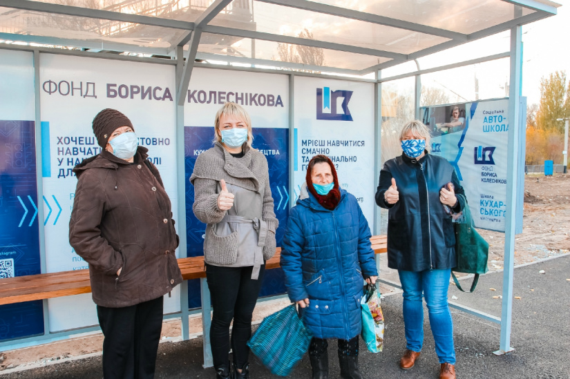 «Мы прочитали в местной газете о том, что Фонд Бориса Колесникова в сентябре поставил комфортную остановку на проспекте Ломоносова. Поэтому инициативная группа жителей нашего района решила попросить у Фонда помощи с монтажом остановки у горадминистрации. Как видите, нам не отказали. Теперь ждем маршрутки и автобусы в крытой и современной остановке, снег и дождь нам не страшны. Благодарим Бориса Викторовича за то, что откликается на наши просьбы, часто выручает горожан, заботится о нас», — рассказывает Варвара Петровна, пенсионерка из Константиновки.
