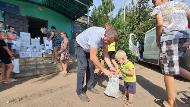 ✅️ Поздравить с Днем знаний детей, проживающих в отдаленных деревнях на линии фронта. Наши волонтеры пожелали школьникам хорошо учиться и вручили 1000 сладких подарков.