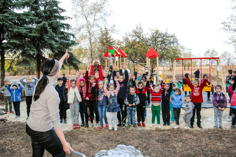 Утро выходного дня у местных детей выдалось теплым и радостным. На открытии нового игрового комплекса их встречали аниматоры с насыщенной программу – с конкурсами, призами, шоу мыльных пузырей, лазанием на горках и развлечениями на каруселях.