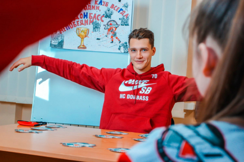 Компанию юным болельщикам во время телепросмотра составил защитник «Донбасса» Андрей Григорьев. «У нашего хоккейного клуба и Фонда Бориса Колесникова давняя и теплая дружба с Ильиновской опорной школой. Ежегодно в День знаний и День Николая мы приезжаем и дарим детям сладкие подарки. Сегодня мы тоже не с пустыми руками: подарили учебному заведению технику. Теперь школьники собираются вечерами у нового телевизора и болеют за нашу команду! Мы, в свою очередь, обещаем им дарить зрелищные матчи и, конечно же, победы!», — рассказывает Андрей Григорьев.