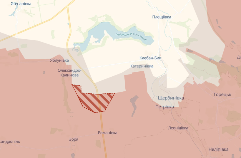 DeepState два дня подряд сообщает о продвижении российской армии на Константиновском направлении. Согласно информации от 19 сентября, российские войска продвинулись возле Катериновки, в направлении водохранилища Клебан-Бык: