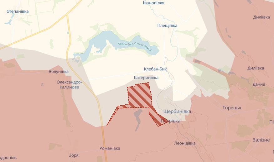 DeepState два дня подряд сообщает о продвижении российской армии на Константиновском направлении. Согласно информации от 19 сентября, российские войска продвинулись возле Катериновки, в направлении водохранилища Клебан-Бык: