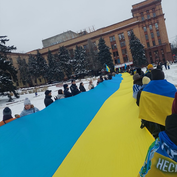 В центре города представители громады вместе с активистами из других регионов Украины создали символическую «Цепь единства». Участники акции совместно держали большое национальное полотно, демонстрируя сплоченность разных громад страны.