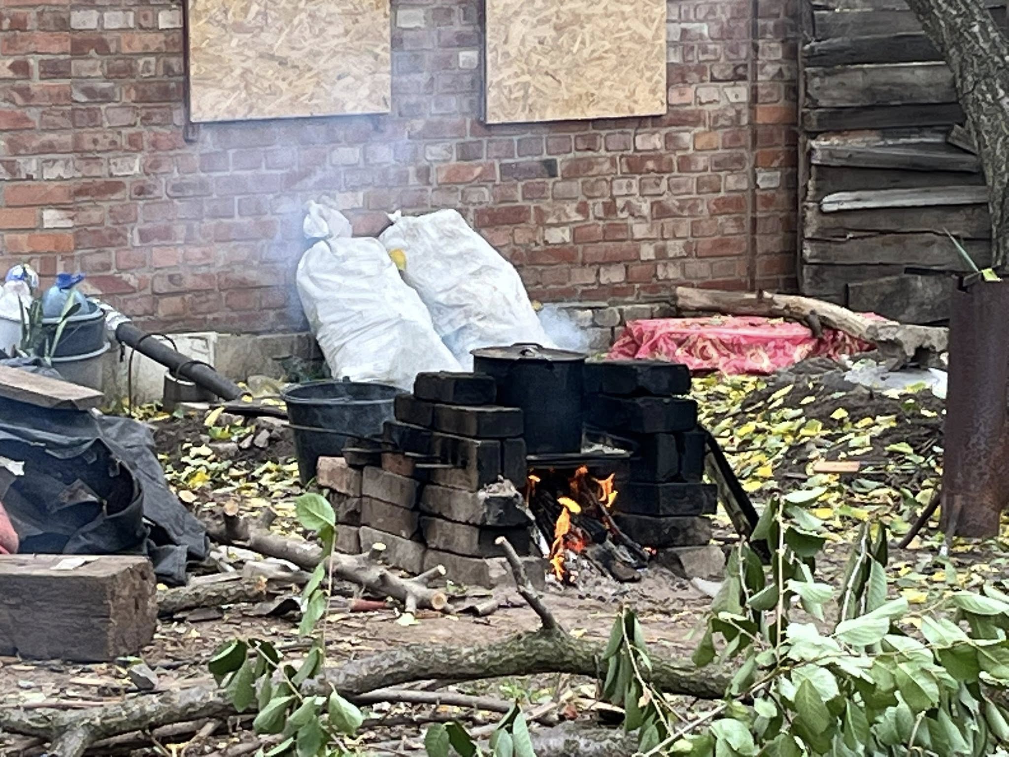 Дым от пожаров по всему городу, даже в относительно тыловой его части, отмечает волонтер.