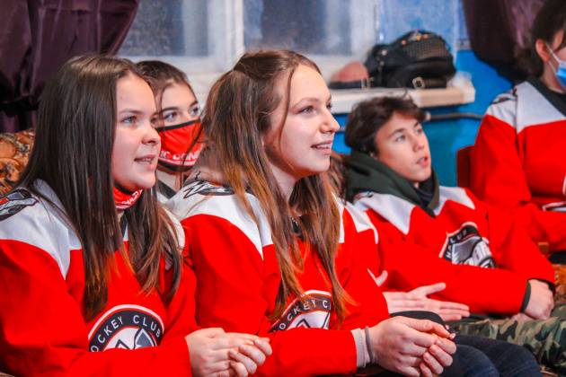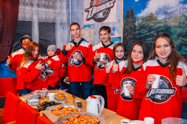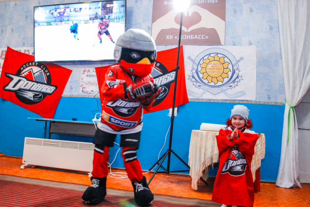 Сегодня вечером юные болельщики из Веролюбовки собрались, чтобы поболеть за любимый хоккейный клуб «Донбасс» в поединке с киевскими «Ледяными Волками». Компанию школьникам составил игрок «Донбасса» Егор Журавлев.