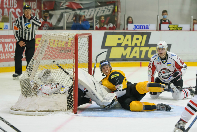 В первом периоде «Донбасс» и «Белый Барс» выдали боевой хоккей. Вязкая борьба сменялась быстрыми атаками. Команды даже забросили по шайбе, но гол «Белого Барса» случился после свистка, а взятие ворот в исполнении дончан отменили после видеопросмотра. Оба раза причиной был контакт полевого игрока с вратарем.