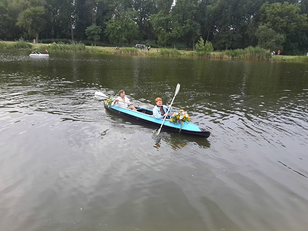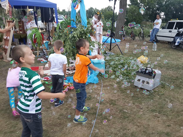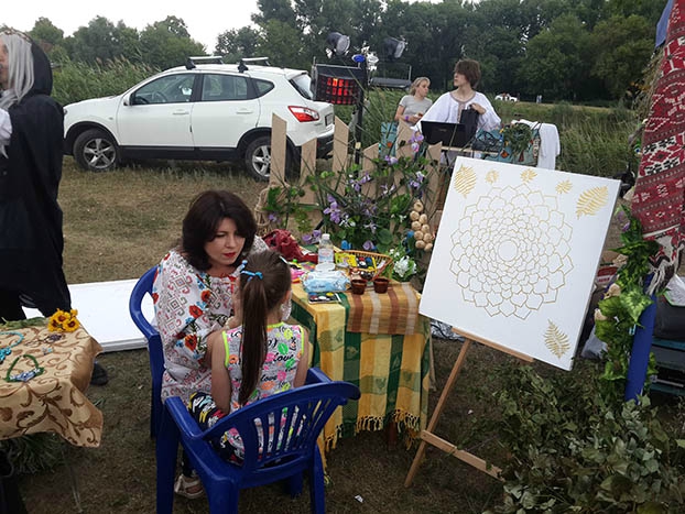 Детворе тоже было, чем заняться. Их украшали аквагримом, развлекали мыльными пузырями, катали по реке на байдарках, учили рисовать, вышивать. Можно было от души порезвиться на поляне, попрыгать на батуте, съесть сладкую вату или мороженное, растормошить своих родителей, помочь им хоть на один вечер окунуться в сказку.