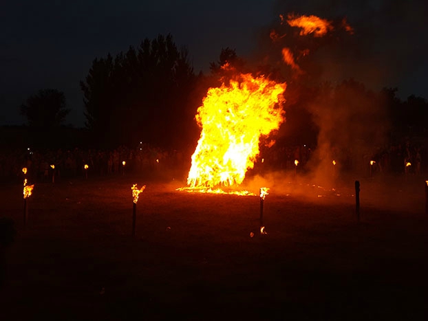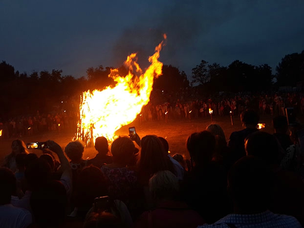 А в темное вечернее небо рванули огненные всплески праздничного костра, отгоняя злых духов и приводя пожарный расчет в боевую готовность. Восторг и искры блестели в глазах зрителей. Аплодисменты и радостные возгласы были аккомпанементом зрелищу.