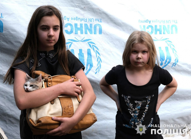 Из охваченных огнем населенных пунктов людей спасают полицейские совместно с ГСЧС, Донецкой ОВА и Торецкой ВГА. Работают более 20 общих групп, среди которых «Белые ангелы», парамедики, спецназовцы.