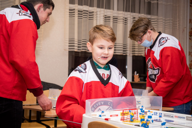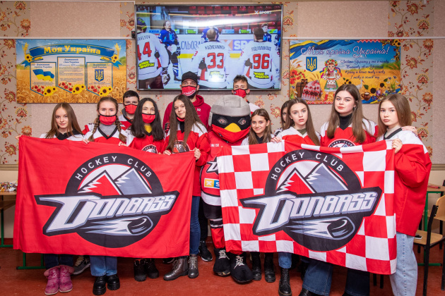 В этот раз компанию школьникам составил защитник дончан Никита Колесниковс. «Уже стало доброй традицией собираться с нашими юными болельщиками и дружно болеть за «Донбасс» у школьных телевизоров. Их, кстати, мы передаем в учебные заведения Донетчины с самыми многочисленными фан-ячейками. Сегодняшний вечер не стал исключением – мы очень тепло пообщались за чашкой чая и сладостями, сыграли в настольный хоккей, провели автограф-сессию. Я убежден: если хочется позитива и заряда энергии, надо организовывать встречу с ребятами из наших фан-клубов, они нам дарят невероятную поддержку», – рассказывает Никита Колесниковс.