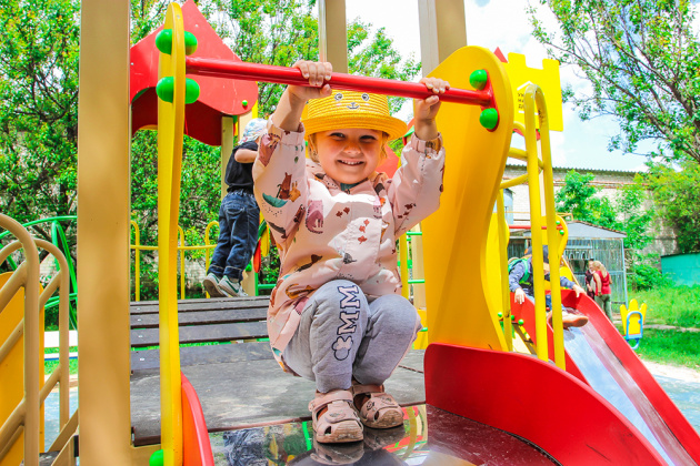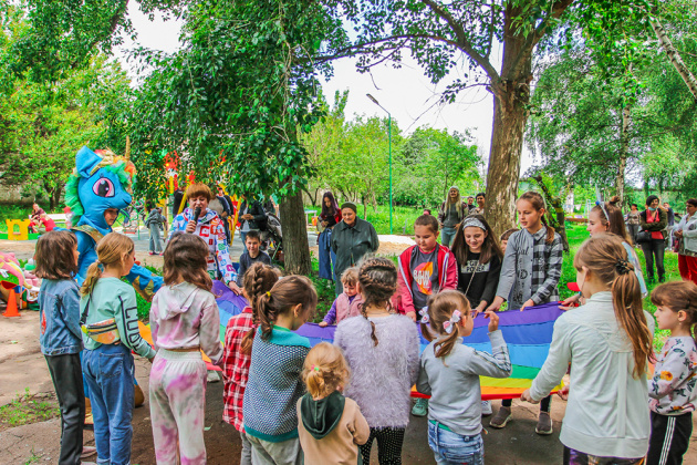 «Продолжаем реализацию социальной акции по установке детских площадок в Донецкой области. Это уже восемнадцатый игровой комплекс, который мы подарили детворе. Смонтирован он был за несколько недель, мы спешили открыть его в начале лета, чтобы малыши с родителями прекрасно проводили здесь время, наслаждались летним отдыхом», – рассказывает София Мудрык, директор Фонда Бориса Колесникова.