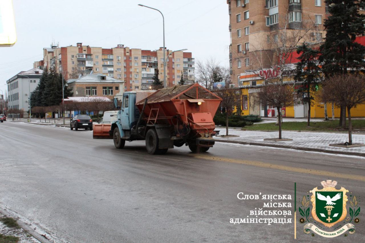 Славянские коммунальщики также борются с гололедицей. Спецтехника работает на дорогах с 5 часов утра, сообщили в Славянской ГВА. Всего задействовано 5 единиц.