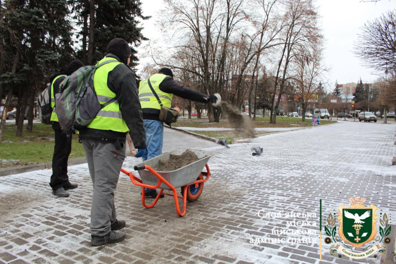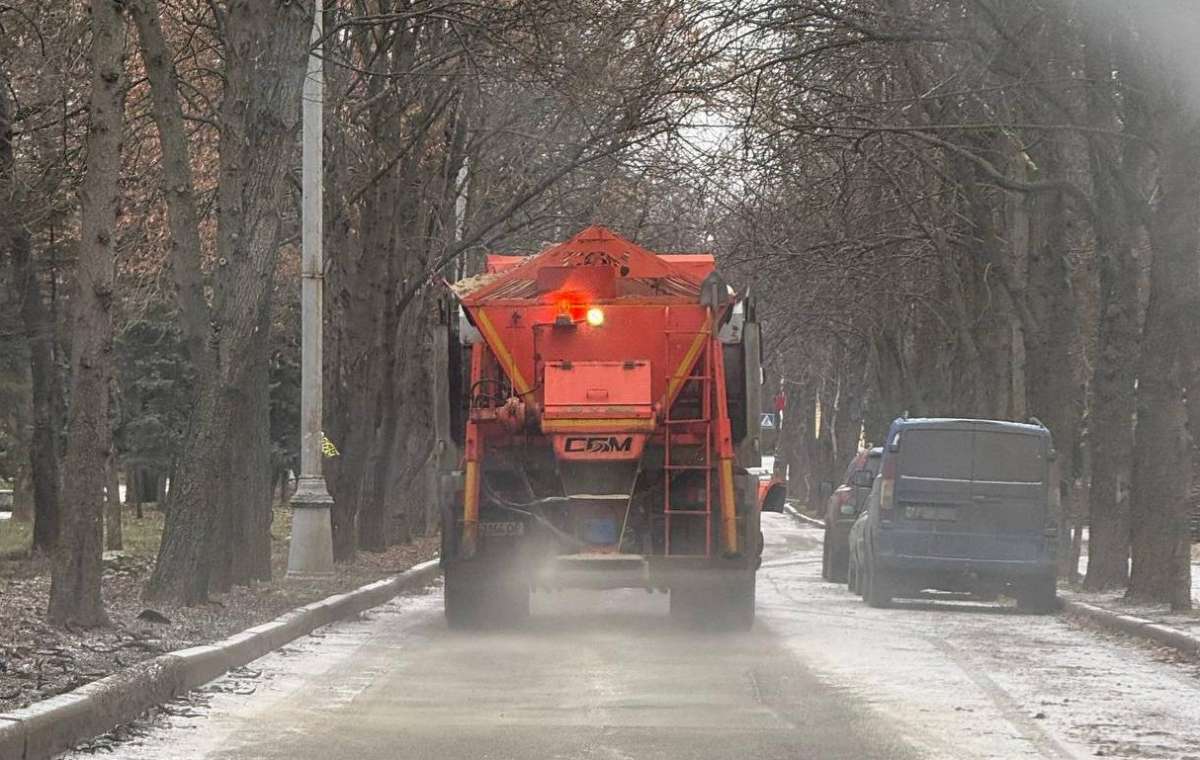 На дорогах Краматорска работают комбинированные дорожные машины, обрабатывают песчано-солевой смесью, в первую очередь, самые уязвимые места – перекрестки и определенные потенциально опасные участки дорог.