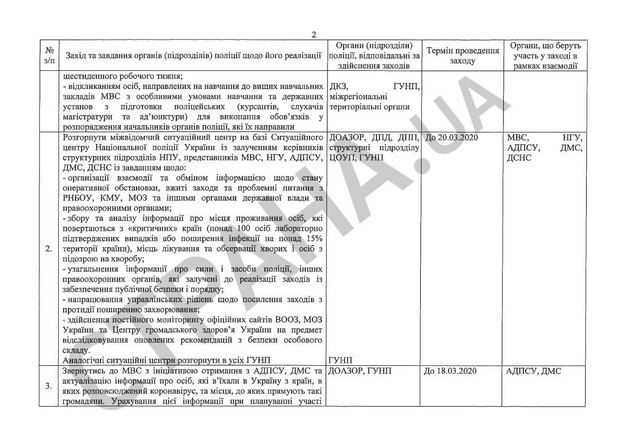 При НПУ разворачивается межведомственный Ситуационный центр по борьбе с коронавирусом, в котором будут координироваться действия с представителями всех служб — от Минздрава до ГСЧС. Такие же межведомственные центры будут организованы при всех областных управлениях полиции.