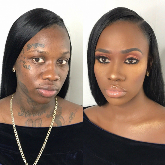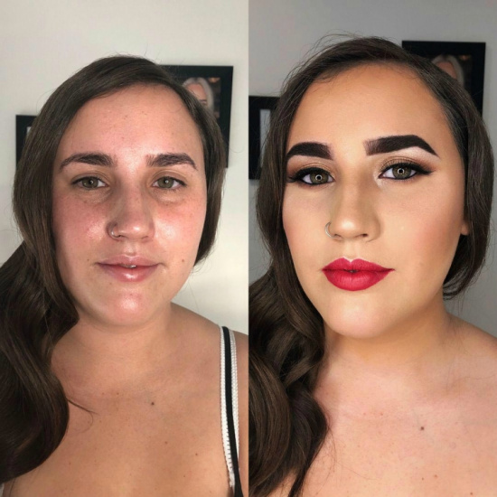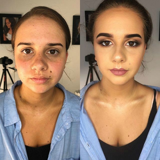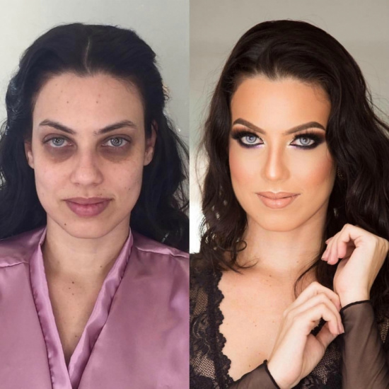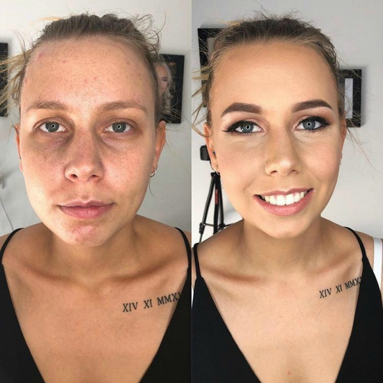 Когда косметикой орудуют настоящие профессионалы, она подчеркивает все достоинства женщин, и скрывает недостатки. Профессиональный мэйк-ап способен скрыть даже неудачный татуаж, замаскировать проблемную кожу или убрать темные пятна под глазами. К этому добавляются техники в виде контуринга и прочих, что окончательно преображает представительниц прекрасного пола.