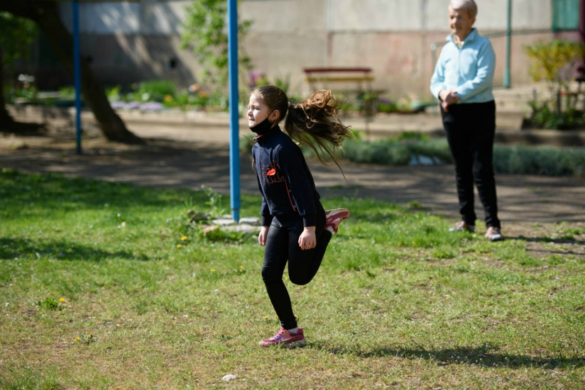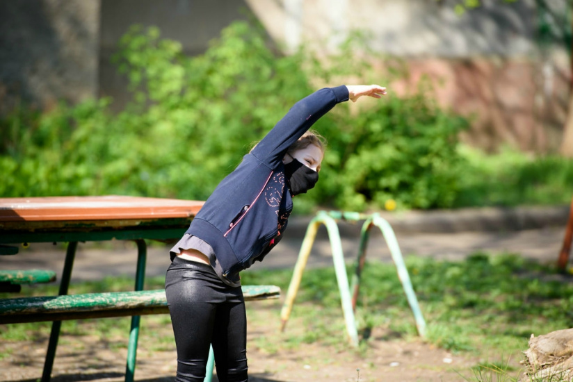 Ребята продемонстрировали правильную технику выполнения упражнений, а все желающие смогли выйти на свои балконы и повторить разминку.