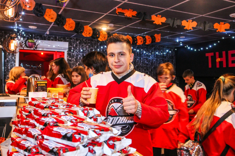Ребята надели хоккейки любимого клуба, активно поддерживали и переживали за кумиров, радовались яркой победе дончан.