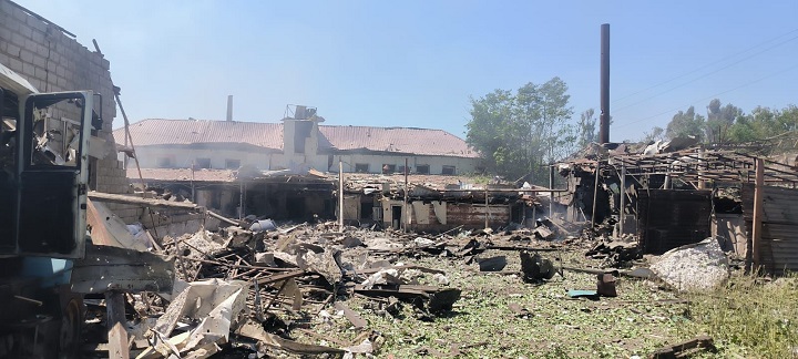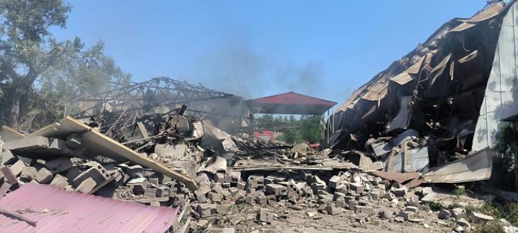 Сообщается, что поврежден фасад предприятия, расположенного в зоне попадания российского обстрела:
