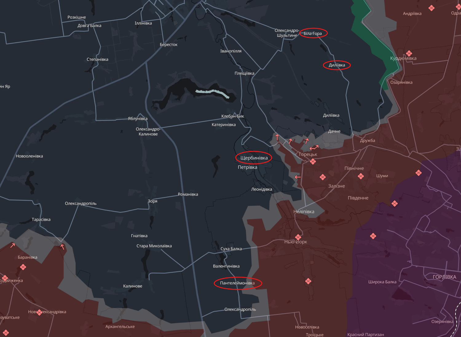 На Краматорском и Торецком направлениях враг атаковал наши оборонные укрепления возле Белой Горы, Дилиевки, Крымского, Юрьевки, Пантелеймоновки и Щербиновки — безуспешно. В районах Часового Яра и Торецка продвижение россиян не допущено.