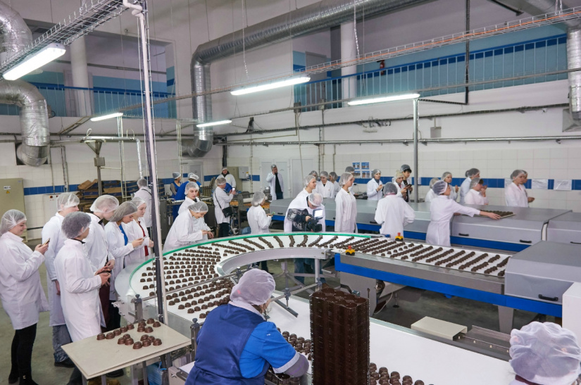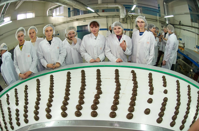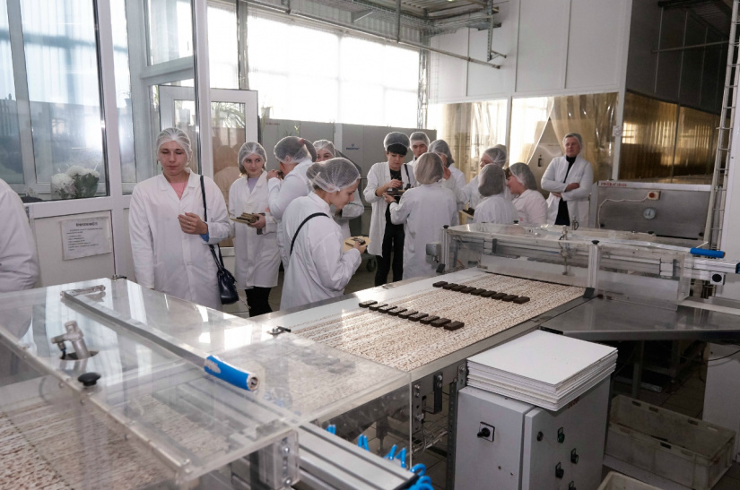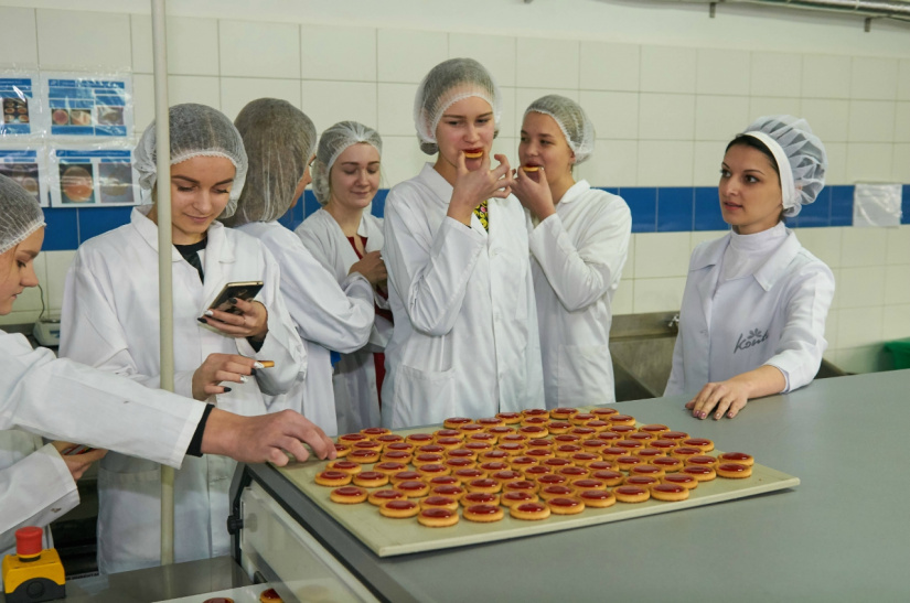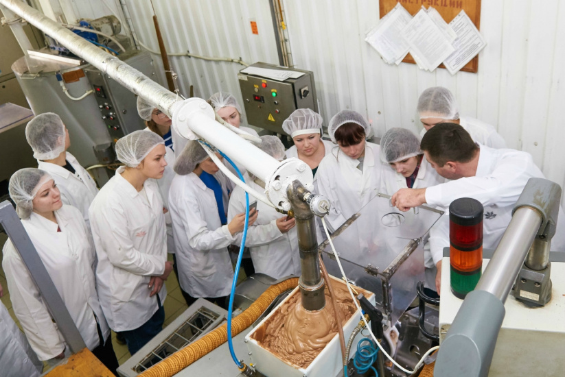 В течение двух дней студенты Черниговского кооперативного колледжа знакомились с передовыми технологиями фабрики и завода, оборудованием, традициями изготовления продукции. Они увидели процессы производства сложных десертов, конфет, вафель и печенья. Технологи организовали обзорную экскурсию по производственным цехам кондитерской фабрики и дегустацию продукции на всех этапах ее производства.