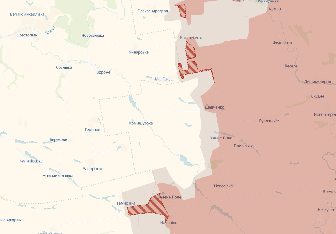 Также армия РФ заняла новые позиции на админгранице Донецкой и Запорожской областей: возле Темировки. На админгранице с Днепропетровской областью россияне продвинулись возле Малеевки.