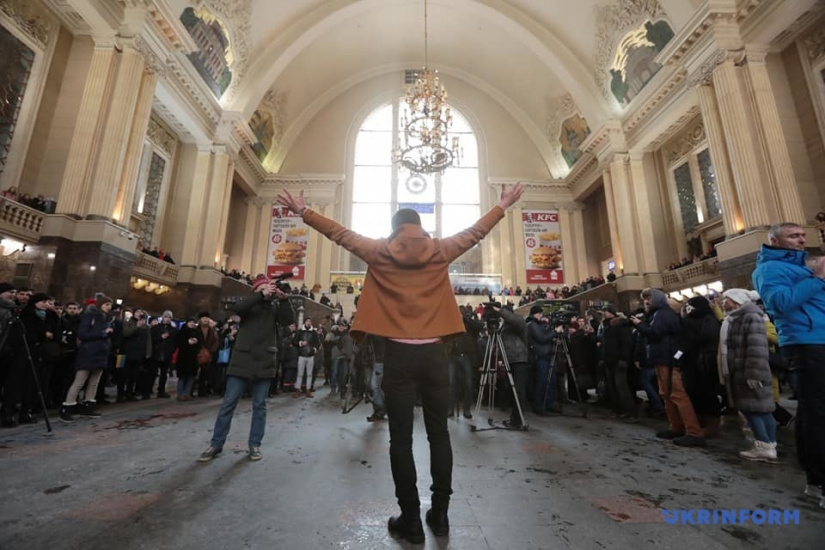 Отметим, что железнодорожный вокзал в Киеве является знаковым местом для Украинской республиканской капеллы, поскольку именно отсюда в 1919 году музыкальный коллектив отправился в свое международное турне.