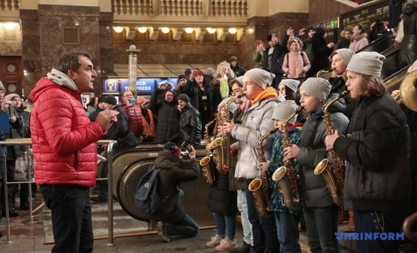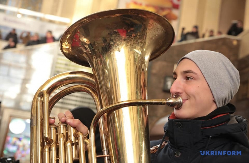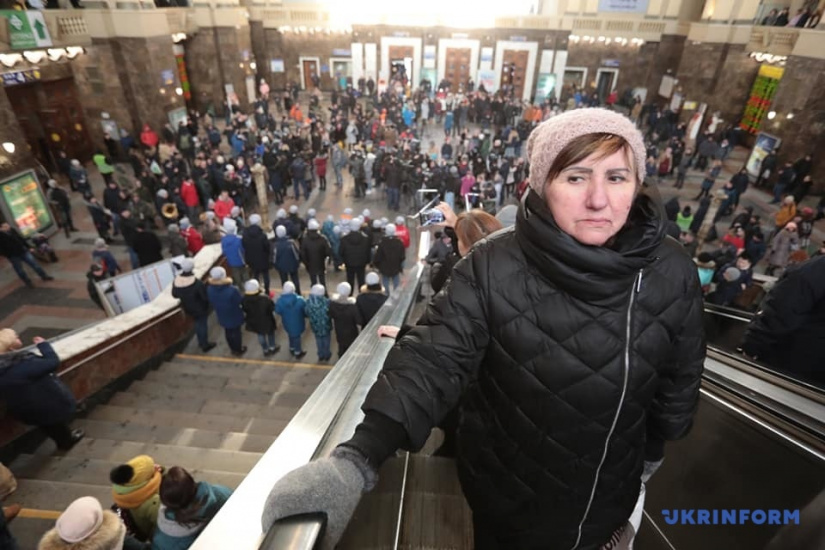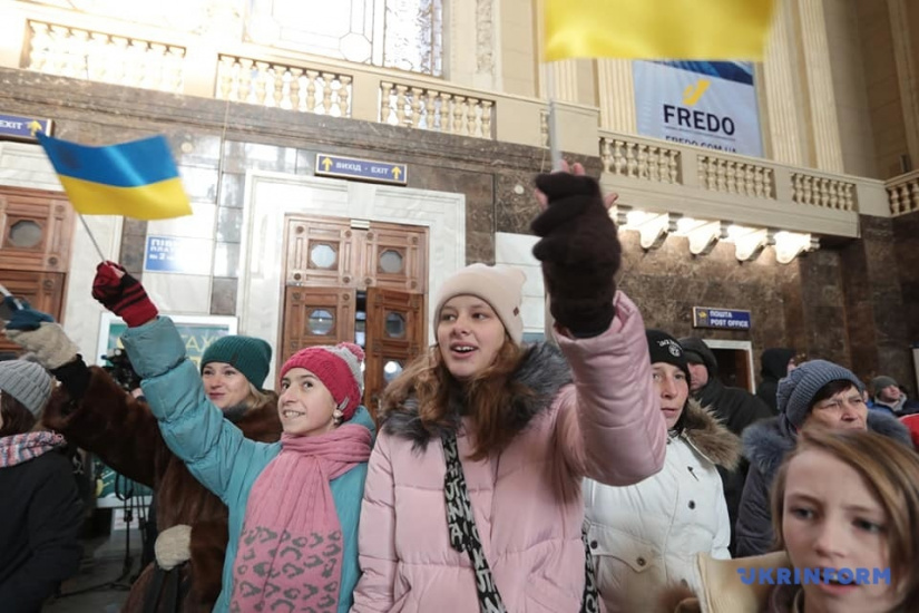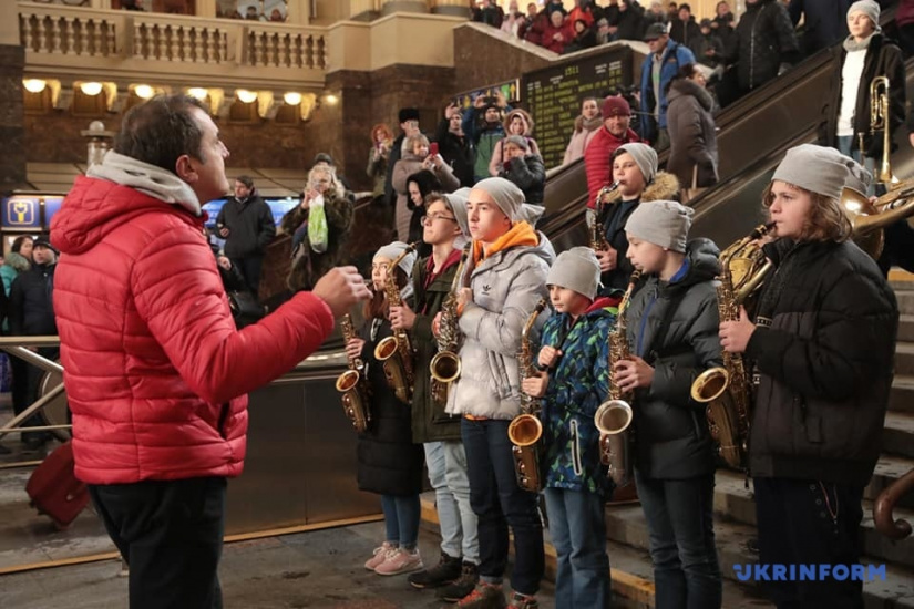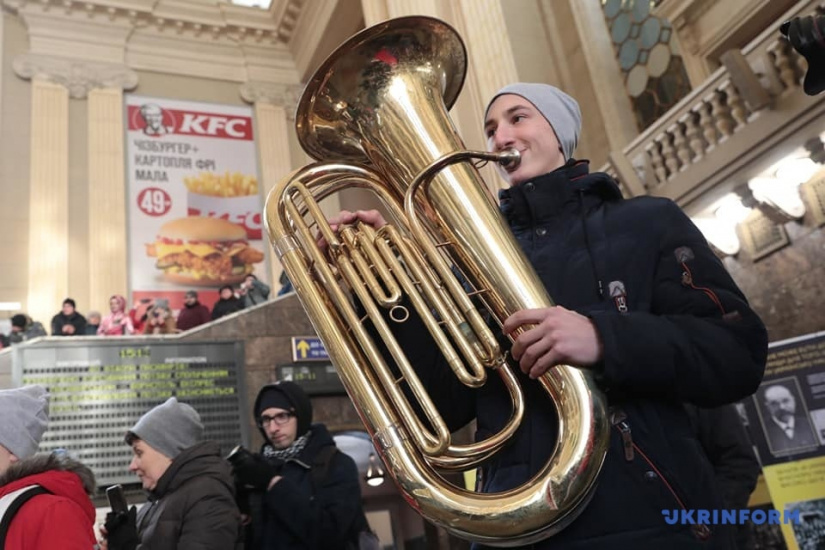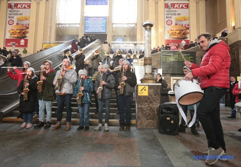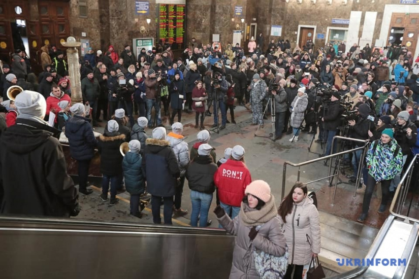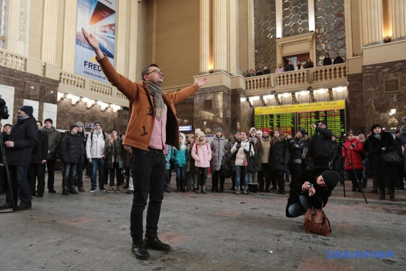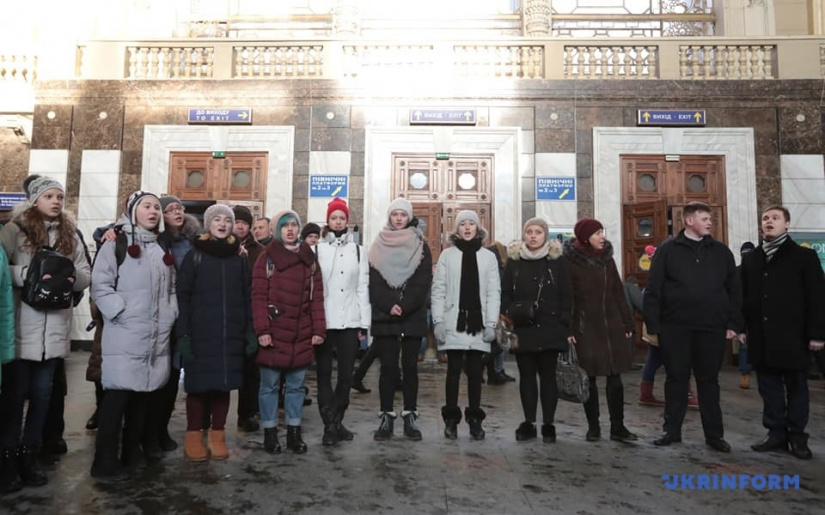 На Центральном железнодорожном вокзале в Киеве сразу 6 хоров совместно исполнили всемирно известный «Щедрик».