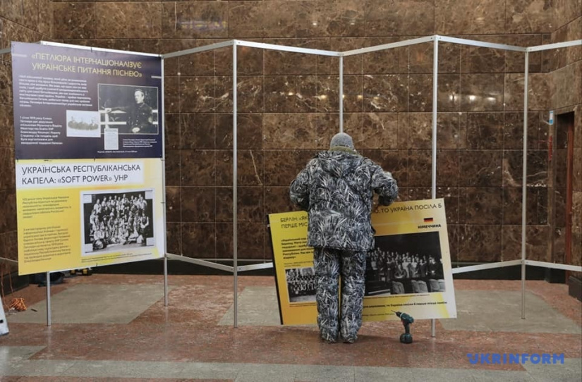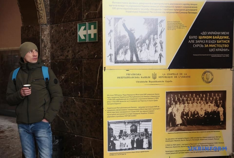 В центральном холле вокзала также была организована фотовыставка «Культурная дипломатия Украины: мировой триумф "Щедрика"», которая рассказывает о мировых триумфальных гастролях Украинской республиканской капеллы под руководством Александра Кошица, которые прошли в период с 1919 по 1924 годы. Турне было инициировано председателем директории УНР Симоном Петлюрой.