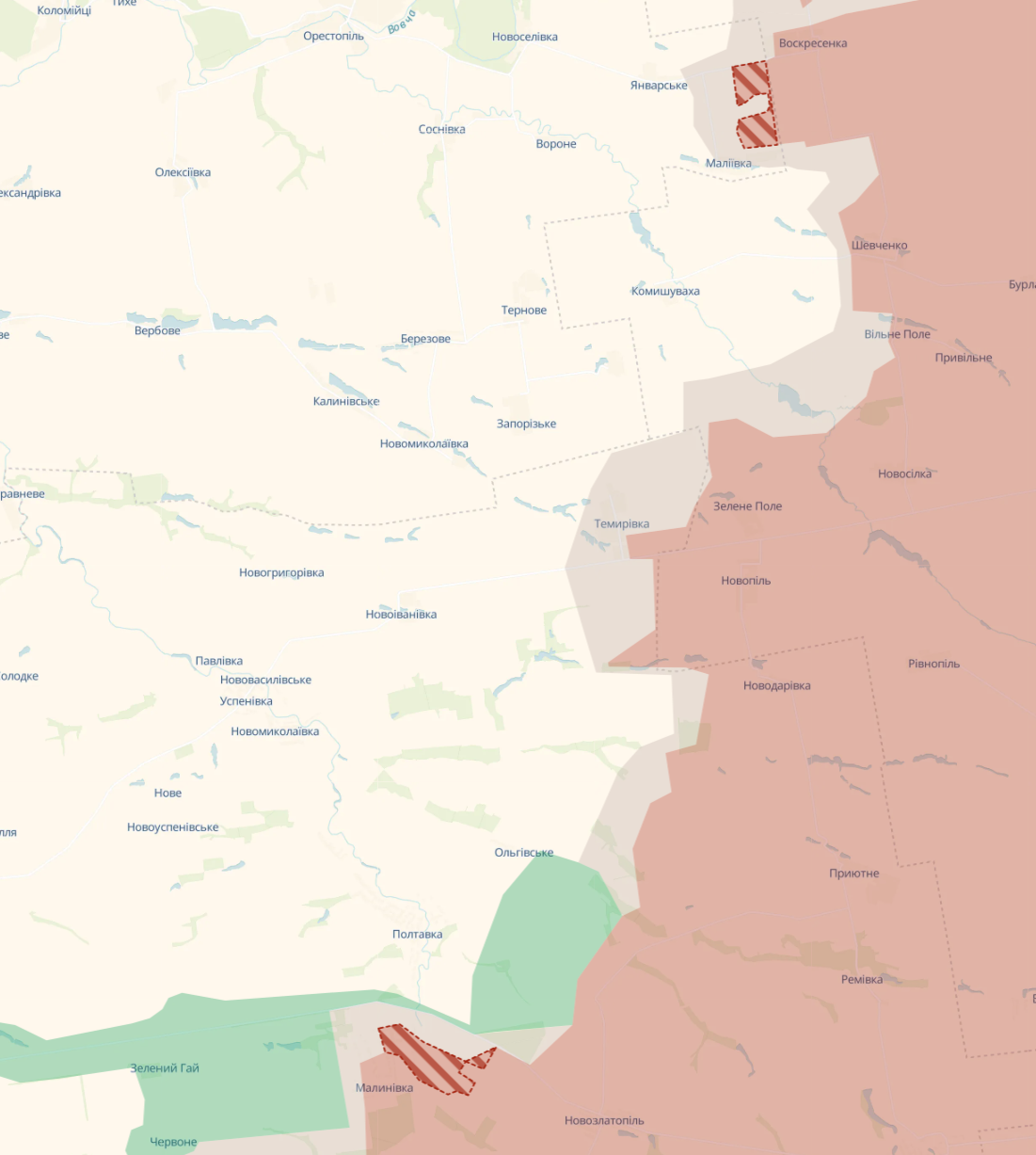 Также аналитики сообщают о продвижении армии РФ вблизи села Сичневое на Днепропетровщине и села Малиновка в Запорожской области.