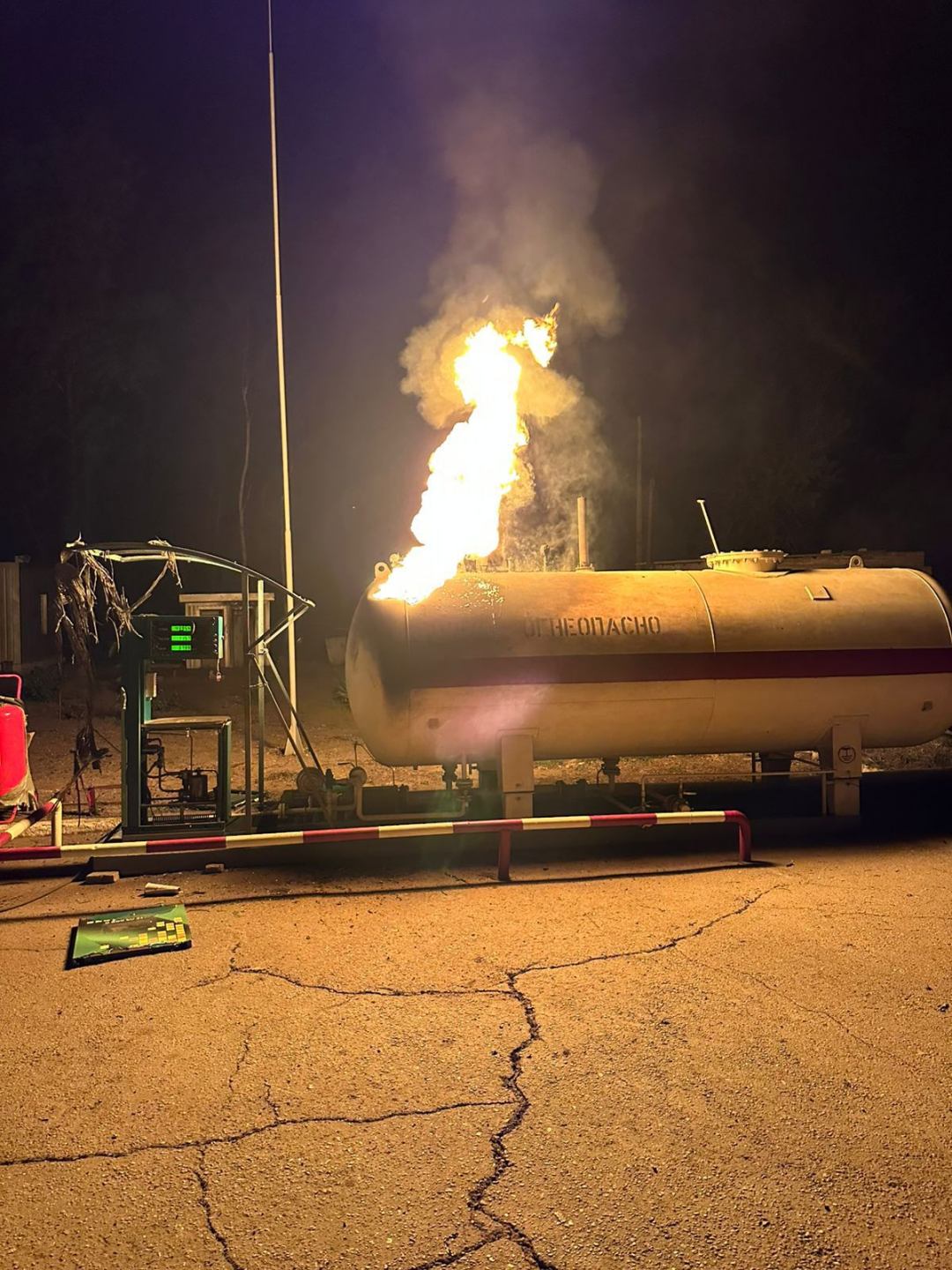 27.05.2025 в 00:15 — обстрел ударными БПЛА (FPV), по городу Константиновке. Повреждена газовая цистерна АЗС.