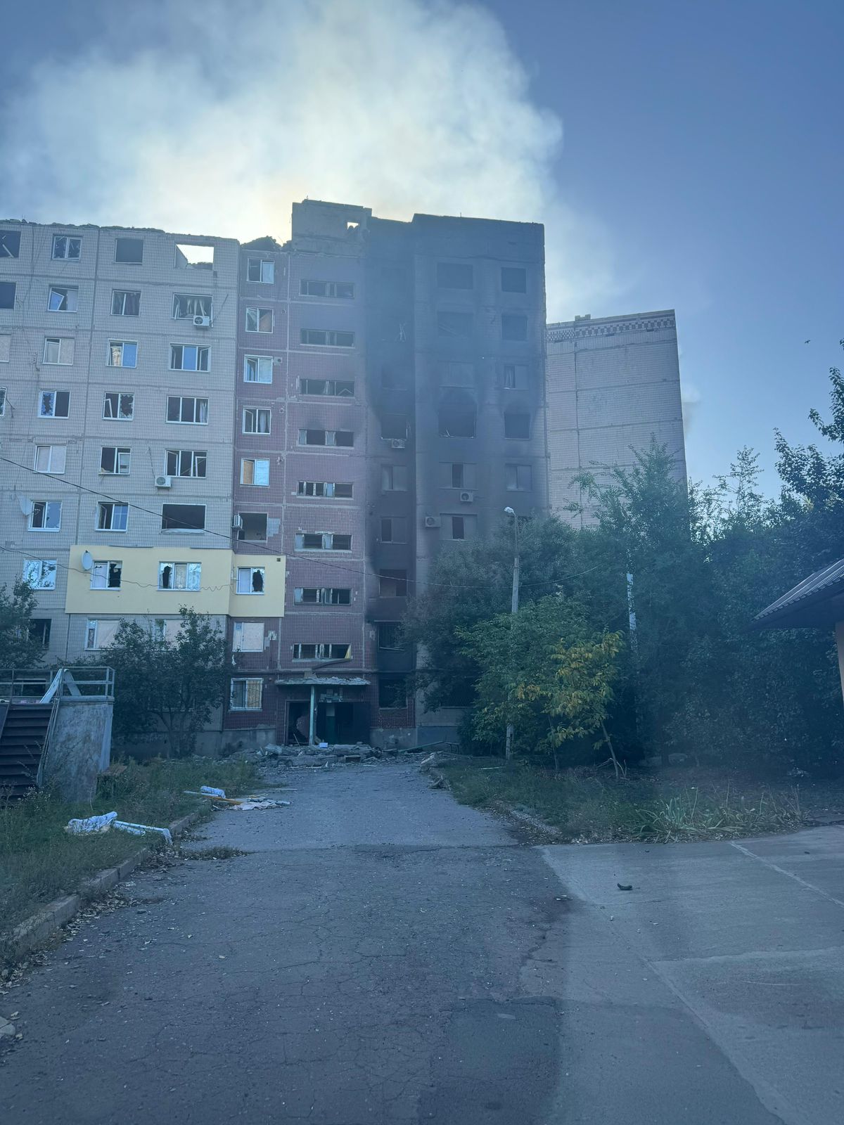 Кроме того, был зафиксирован обстрел двумя ракетами из РСЗО «Смерч». В результате поврежден фасад многоэтажного дома и два частных домовладения. Пострадавших посреди мирного населения нет.