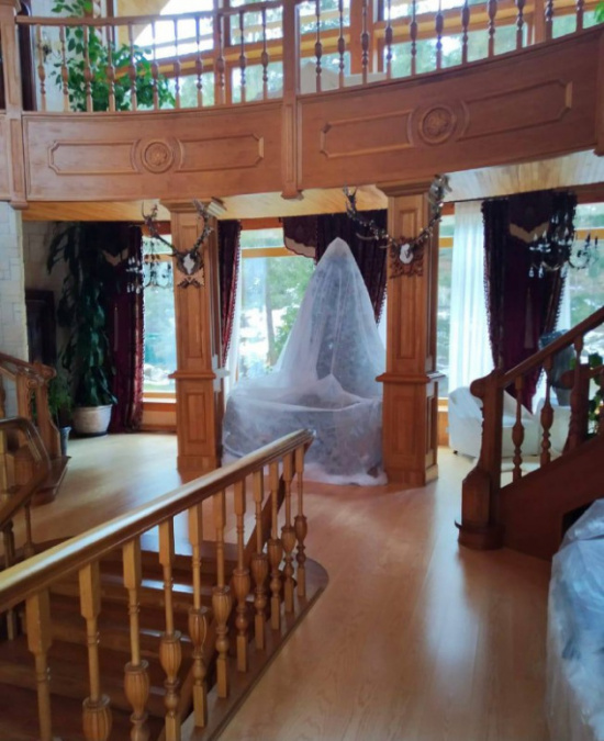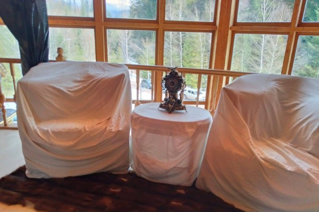 Сообщается, что в доме нашли элитное авто Maybach и картинную галерею. Мебель и техника накрыты чехлами от пыли: видимо, туда семья Медведчука приезжает редко.