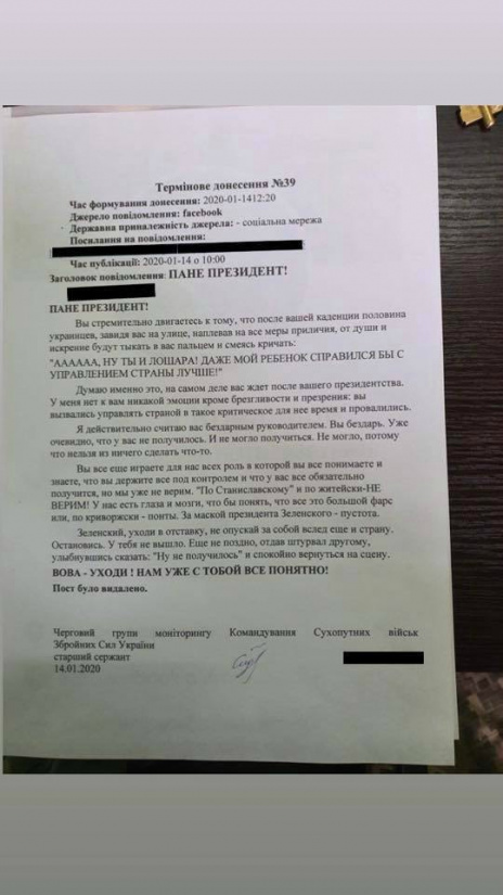 Примечательно, что решение командования в отношении майора, который критично высказался о Зеленском, было принято на основе доноса, написанного сержантом ВСУ.