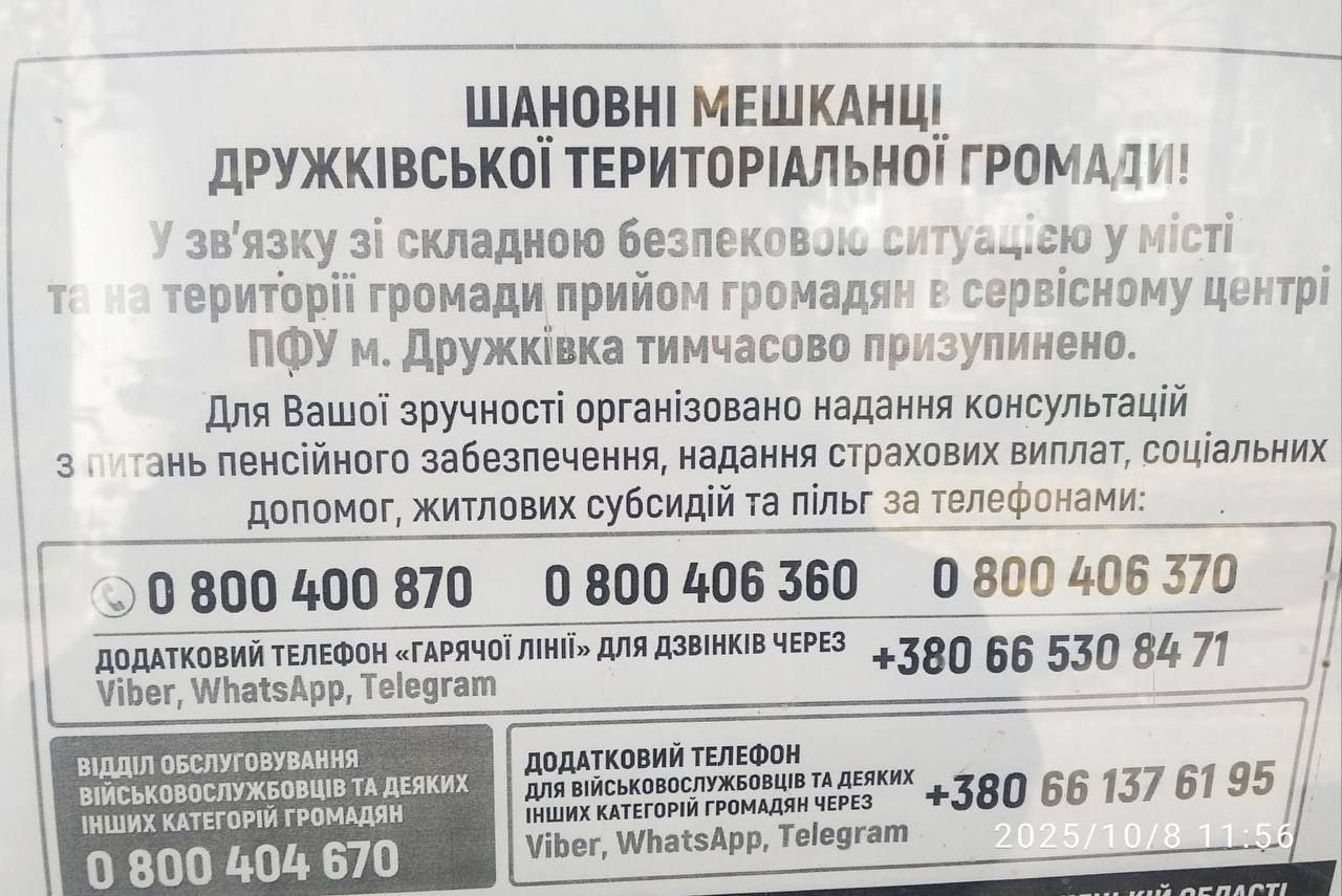 В связи со сложной ситуацией безопасности в городе и на территории общины прием граждан в сервисном центре ПФУ г. Дружковка временно приостановлен.