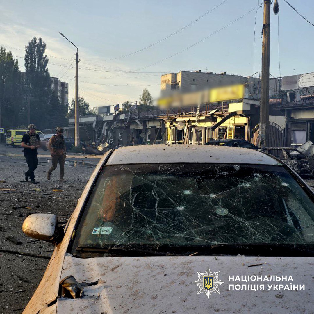 Российская авиабомба ударила по работавшему торговому центру. В результате удара второй этаж упал на первый. Полицией зафиксировано повреждение 75 гражданских объектов: 13 многоквартирных домов, 54 торговых точки, 8 транспортных средств, сообщил начальник ГУ Нацполиции в Донецкой области Руслан Осипенко.